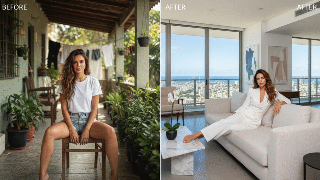 Com o Pack Premium – Fotos Profissionais com IA, você transforma qualquer foto que já tem no celular em ensaios super-realistas, com cenários incríveis e roupas novas — em segundos.